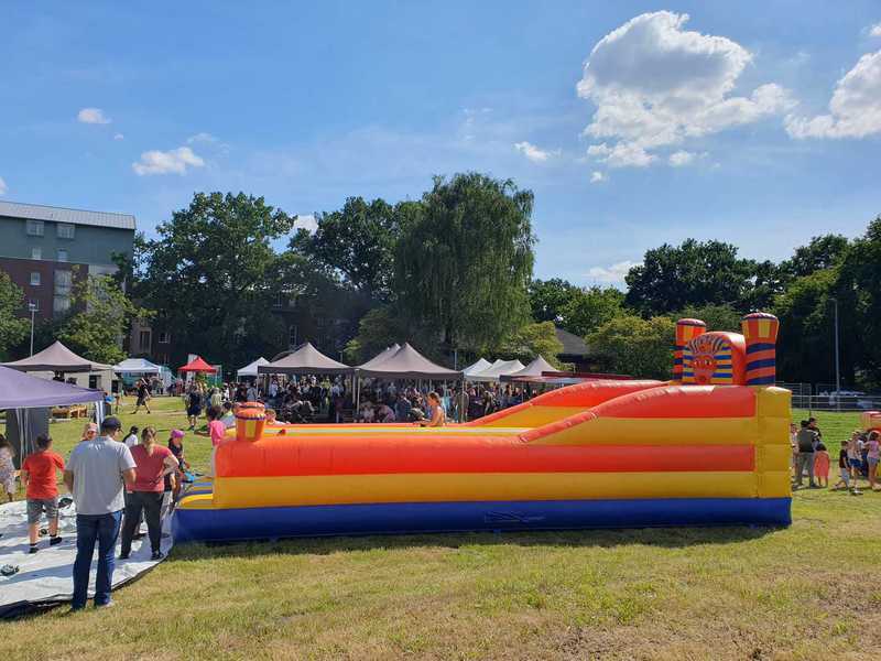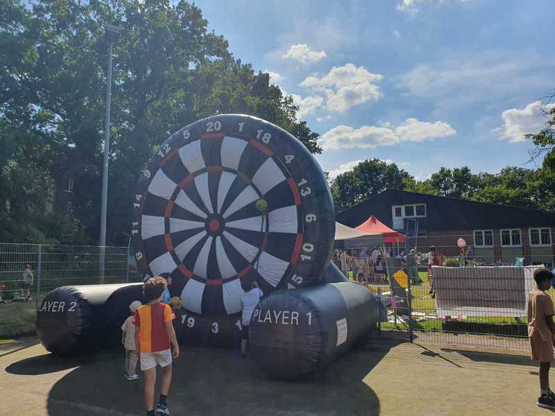 Auf einem Sommerfest für die Kinder haben wir einige Attraktionen wie Torschusswände und Hüpfburgen mitfinanziert.